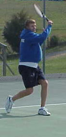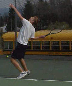 Unlike Jim and Scott, Brandon has not played tennis for most of his lifetime. He began swinging a racquet his sophomore year at the urging of these close friends. But Brandon is a fine athlete so he picked up the strokes quickly. By the time he was a junior, he was a starter at #5 for FDHS. And his senior year he has anchored down the #3 spot in the ladder thanks to lots of hard work. Brandon’s fond memories of playing on the team in prior years included watching James break his wrist while running backwards on the first day of practice in 2001. He likes wearing the blue sweat shirts. But most of all he enjoys winning, and he’s getting used to that feeling. |
